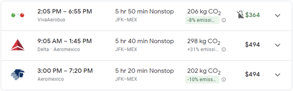 Source: Google Flights for December 5, 2022, as of November 10, 2022.